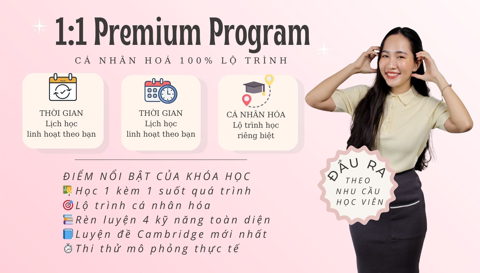 Được thiết kế dựa trên trình độ và mục tiêu RIÊNG của bạn