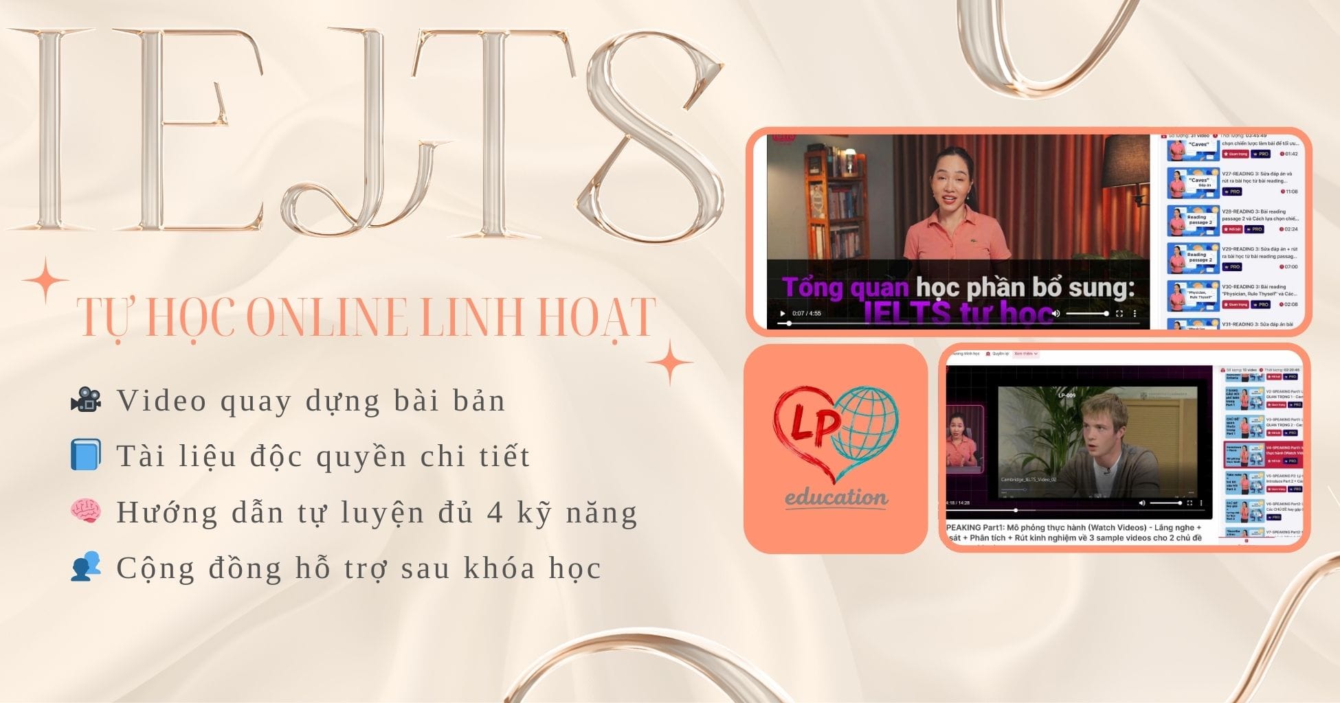 Bên cạnh hình thức học Trực Tiếp, học Hybrid (trực tiếp + online), và học Online qua Zoom, LP Education còn phát triển khóa IELTS Tự Học Online linh hoạt, dành cho học viên bận rộn hoặc ở xa.